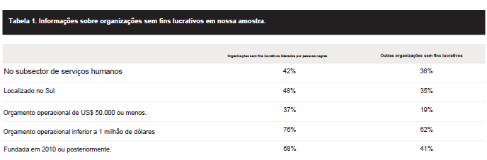 - Análise de 627 organizações lideradas por pessoas negras