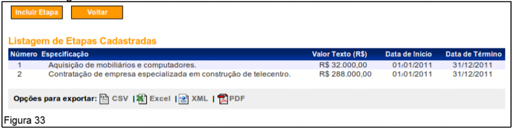 Para visualizar a(s) etapa(s) incluída(s), o usuário deverá clicar no botão “Voltar”, conforme Figura 33.
