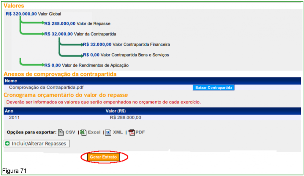 O sistema disponibiliza o botão “Gerar Extrato”, contendo todos os dados registrados para a proposta, conforme Figura 71.