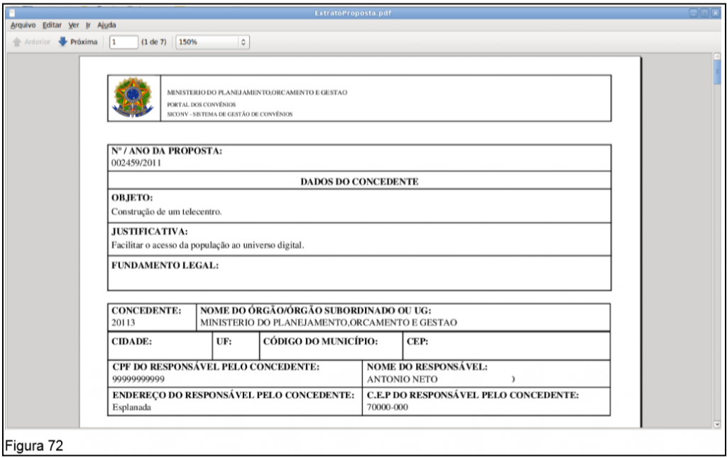 Após clicar no botão “Gerar Extrato”, o sistema disponibiliza o extrato em formato PDF, conforme Figura 72.