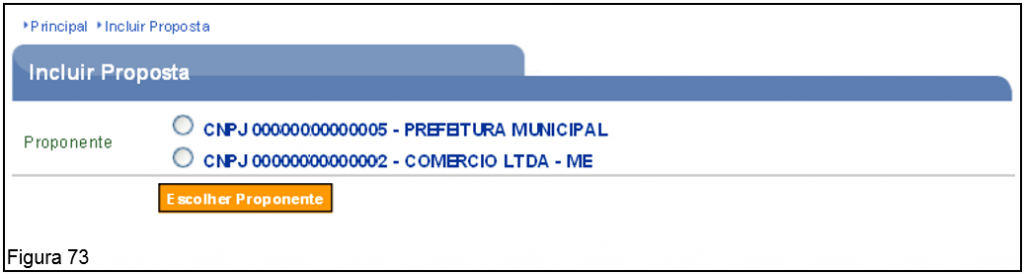 Após selecionar o Proponente, o usuário deverá clicar no botão “Escolher Proponente”, conforme Figura 73.