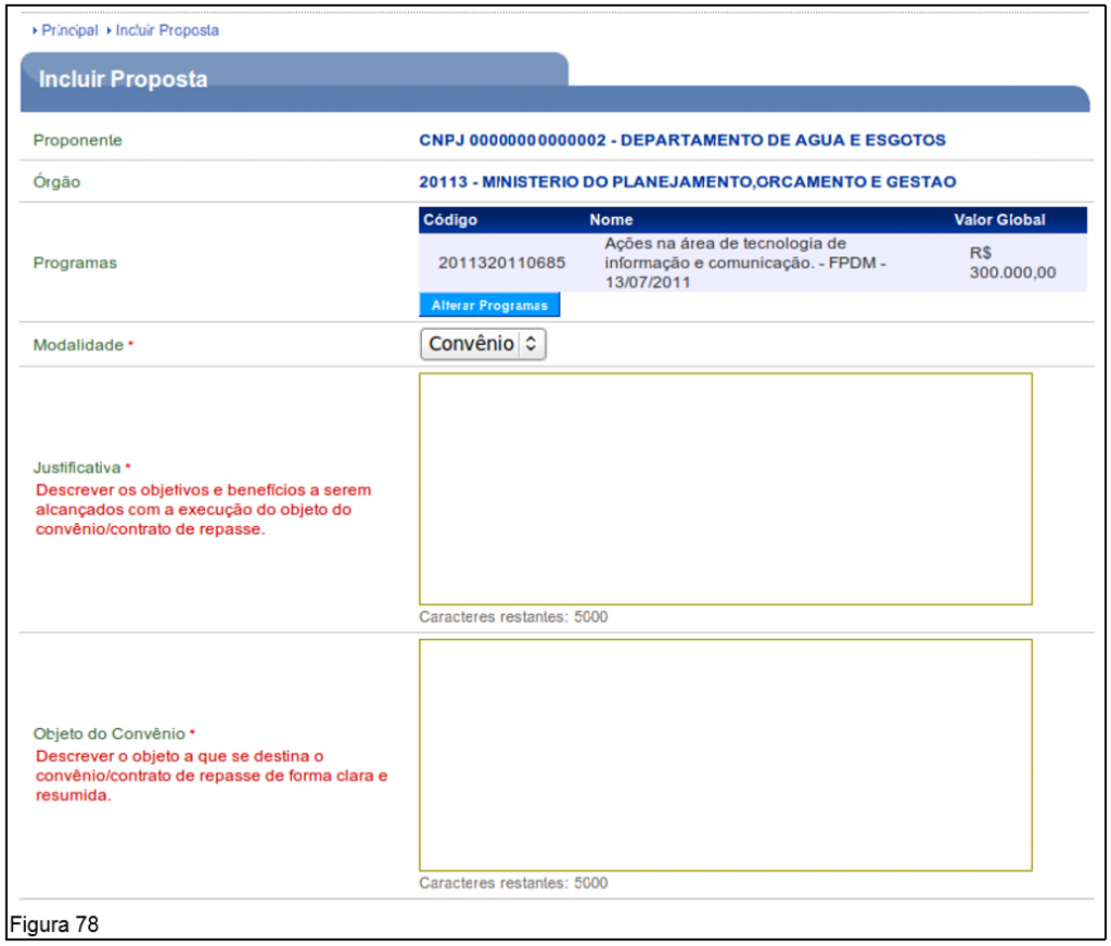 Os próximos campos deverão serem preenchidos conforme 4.2. Incluir Proposta deste Manual.