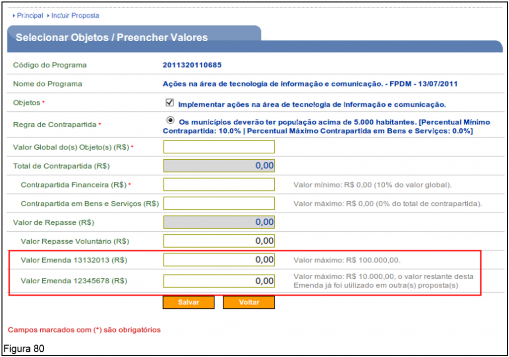 O campo do valor da Emenda 12122012 não está exibido porque foi utilizado o valor máximo da Emenda.